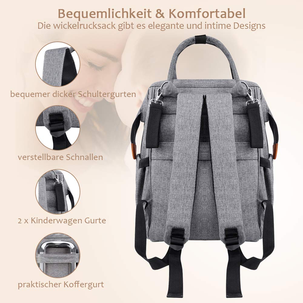 Uljan Baby Wickeltasche Wickelrucksack Multifunktional Windeltasche Grau Babytasche Mit 2 Kinderwagen Haken Mama Rucksack Wasserdicht Toller Service