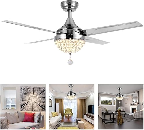 Gototo Ventilateur De Plafond Avec Lumiere Et Telecommande Ventilateur De Plafond Silencieux Avec Led Lampe En Cristal Pour Salon Chambre Salle A Manger 4 Pales 44 Pouces Eclairage Integre Amazon Fr Cuisine