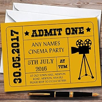 Amazon Com Amarillo Dorado Admit One Pelicula Personalizable Para Ninos Invitaciones Para Fiesta De Cumpleanos Office Products