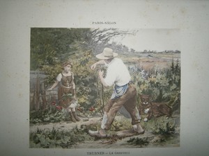 Gravure 19° 1899 couleur Peinture Thurner: Le greffeur jardinier jardin potager | eBay